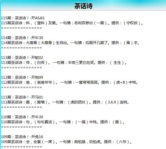110期: 四季生肖 【冬春夏】 开30牛准
