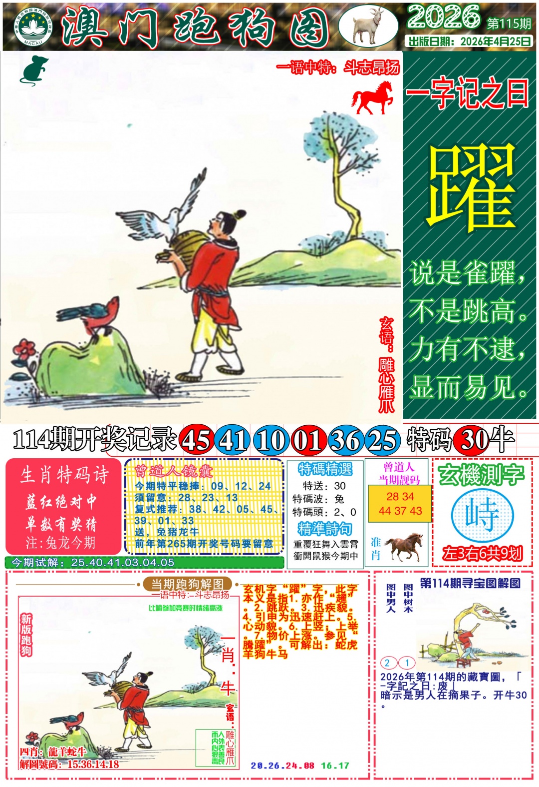 114期: 四季生肖 【春冬夏】 开30牛准