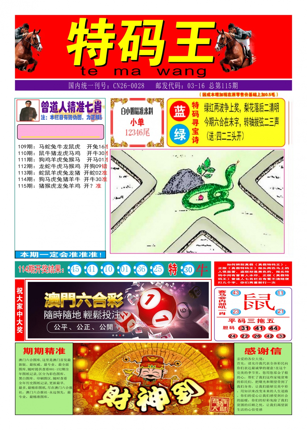 115期: 平特一肖: 【马马马】 开??准